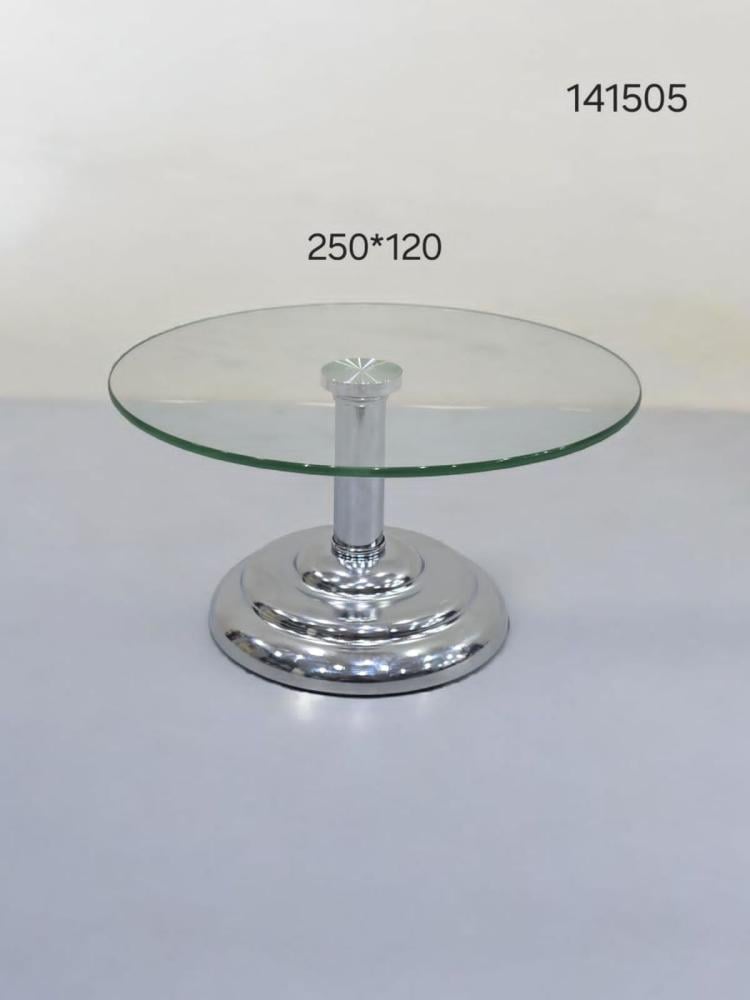 صحن زجاج بقاعدة ستانليس ستيل – تصميم أنيق لتقديم الضيافة بأسلوب فاخر