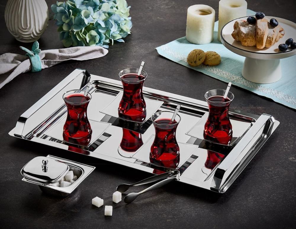 استمتع بتجربة ضيافة لا تُضاهى مع هذا الطقم المتكامل المصنوع من الستانلس ستيل عالي الجودة، والمصمم بذوق عصري يليق بجلساتك الراقية.