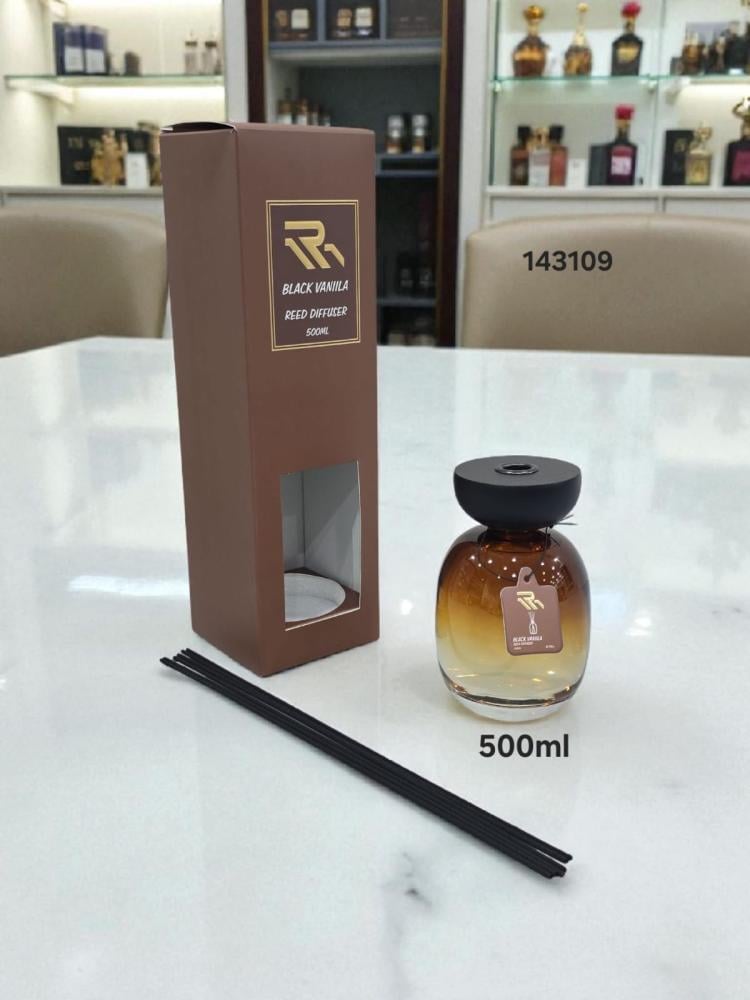 • وصف المنتج: موزع عطر منزلي بعطر الفانيليا السوداء، يأتي في زجاجة بحجم 500 مل مع أعواد خشبية لامتصاص ونشر العطر في الغرفة.