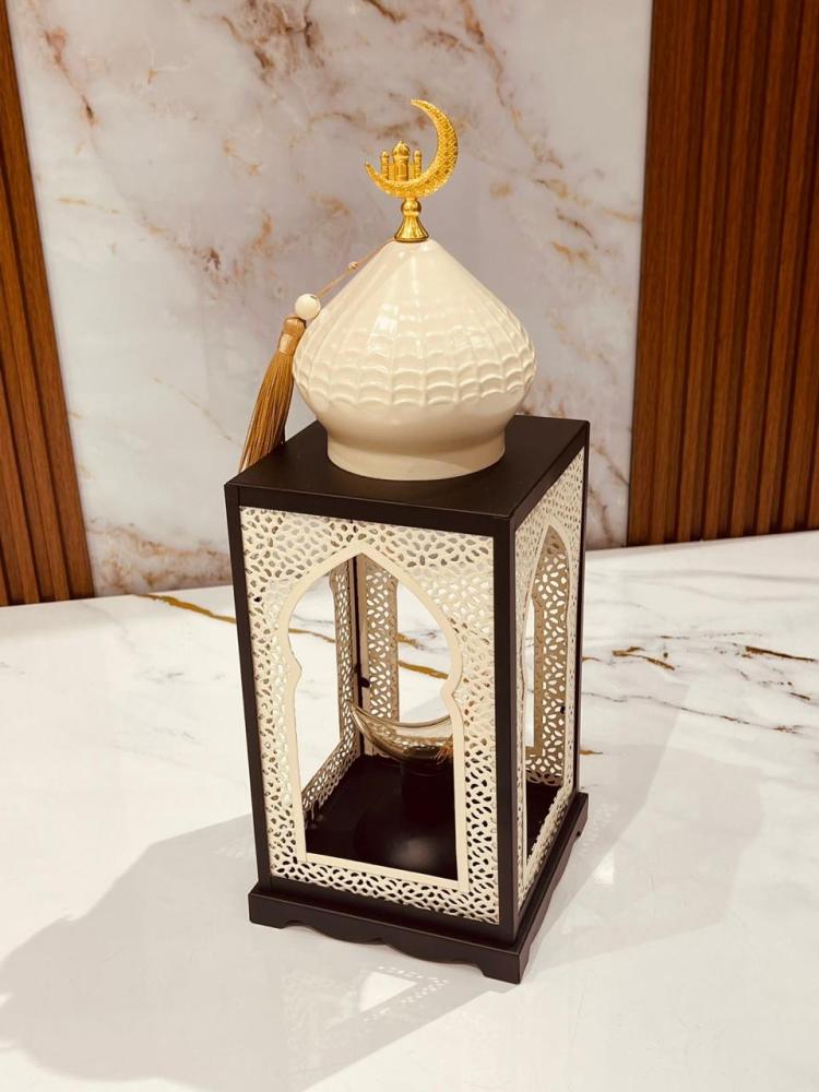 فانوس رمضاني نقشة اسلامية مربع الشكل برأس نجمة وهلال بالشكل الجذاب والحديث