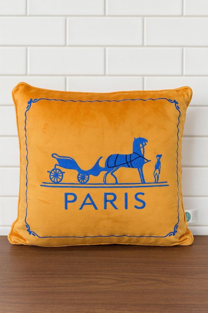أضف لمسة من الأناقة الفرنسية إلى منزلك مع وسادة “PARIS” الفاخرة بلونها البرتقالي الدافئ ونقوشها الزرقاء البارزة التي تجسد عربة الحصان الكلاسيكية بأسلوب فني راقٍ.