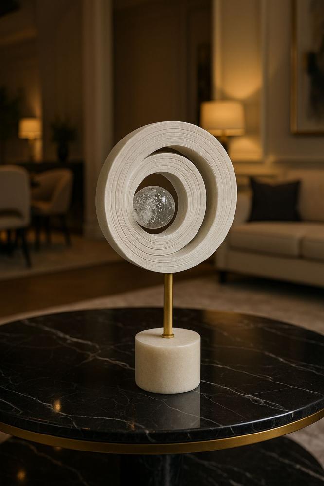 ارتقِ بجمال منزلك مع تحفة ديكور فاخرة من متجر تحفة ديرتي، قطعة عصرية تجمع بين الفن والأناقة في تصميم واحد مميز. بفضل تفاصيلها المتقنة والكرة الزجاجية البراقة في المنتصف، تمنح هذه التحفة لمسة راقية تجعل أي مساحة أكثر فخامة وجاذبية.